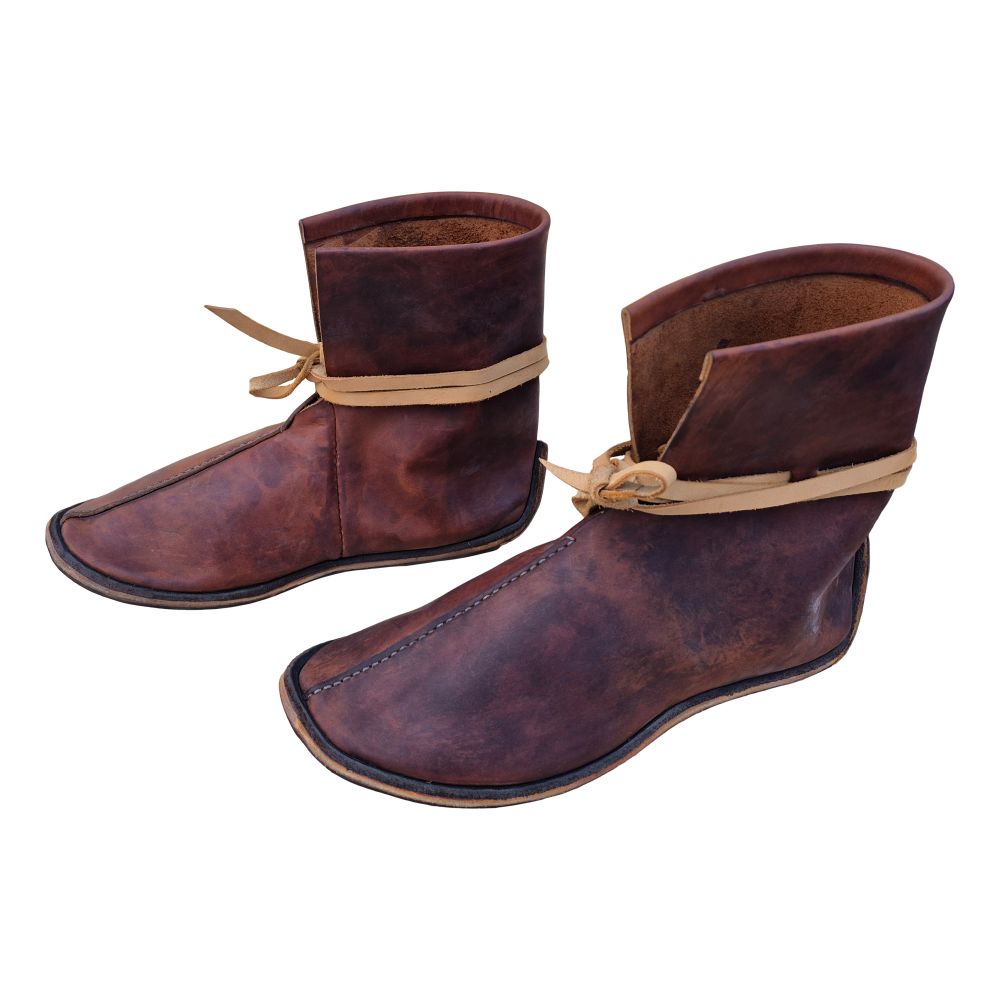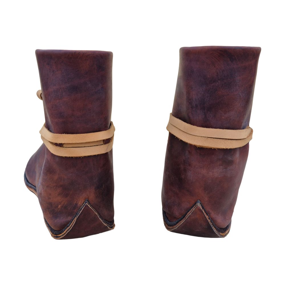 Описание - Ботинки Средневековые Скандинавские с центральным швом и пяткой. Серия "Комфорт"Обувь Серии "Комфорт" - Обувь серии "Комфорт" отличаются особым подходом к удобству обуви и ее долговечностью. - Все выворотные швы аккуратно обработаны для большего комфорта. - Все соединения сделаны максимально надежно для долгого и приятного ношения. - Эта модель является упрощенной версией ботинок из Хедебю тип 10 - Верх из кожи толщиной 3мм, - Подошва склеена из нескольких слоев толщиной 8-9 мм. - Подошва возможна в 3-х исполнениях: 1 - полностью кожаная, 2 - полностью резиновая, 3 - комбинированная (большая часть резиновая, видимые края - кожаные) - Ручной шов. - Вощение всех внешних поверхностей Условия доставкиВариант 1: Самовывоз из магазина по адресу 2-й Вязовский проезд, 10