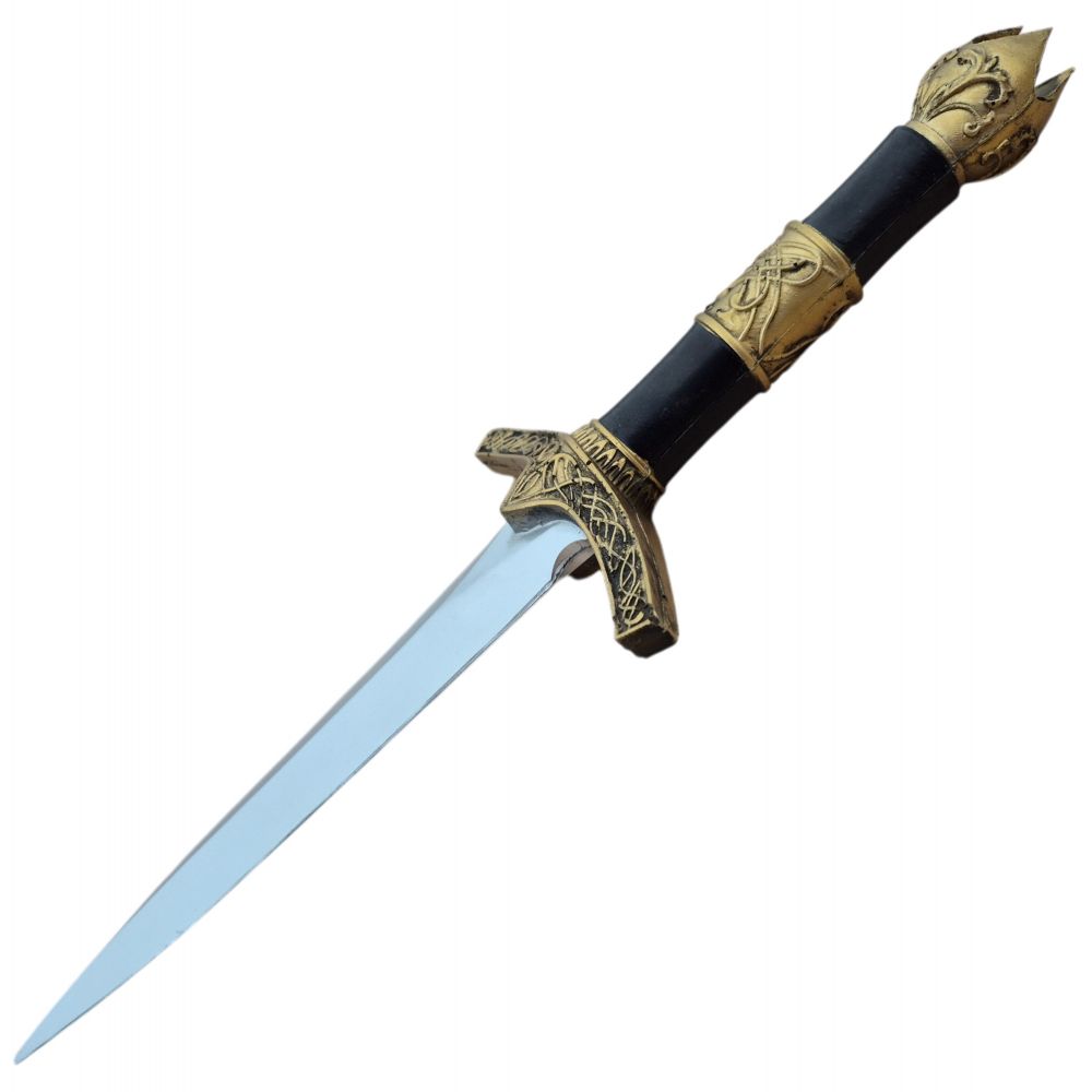 Описание - Кинжал LARP Чародей. Серия "Стандарт"Общая длина: 37 см Длина клинка 21 см Ширина Гарды 10 см Ширина клинка 4 см Твердость 30 Шор А Вес 0.06 кг - Этот кинжал является уменьшенной копией Кинжала Короля Чародея из Властелина Колец - Очень удачное сочетание длины клинка, рукояти и бронзовых деталей придает этому кинжалу одновременно мрачный и изысканный вид. - Такой маленький и неприметный кинжал можно спрятать где угодно: в рукаве, в голенище сапога или за пазухой и не каждый обыск сможет найти его. - Кинжал маленький, но имея его при себе, вы никогда не остаетесь безоружным. - Протектированное LARP Вооружение это специально изготовленные из мягкой полиуретановой пены модели оружия. Эти модели применяются на ролевых играх, тренировках и других развлекательных мероприятиях где не допущено текстолитовое или дюралевое вооружение. - Протектированное LARP оружие мягкое и легкое, поэтому риск нанести им травму минимален. Его применяют на мероприятиях с минимальным количеством доспехов. - Так-же протектированное LAPR оружие отлично подходит для ночной ролевой боевки, куда обычно не допущено никакое другое оружие. Условия доставкиВариант 1: Самовывоз из магазина по адресу 2-й Вязовский проезд, 10