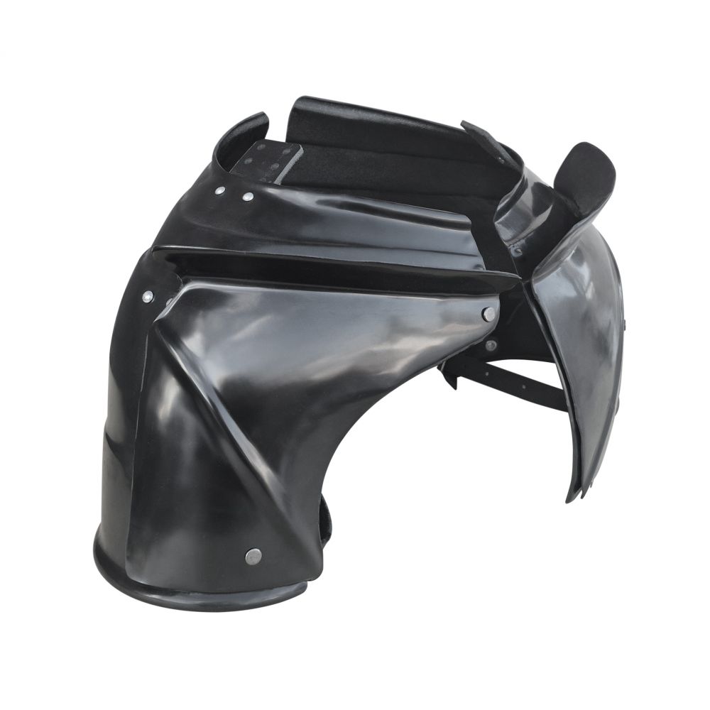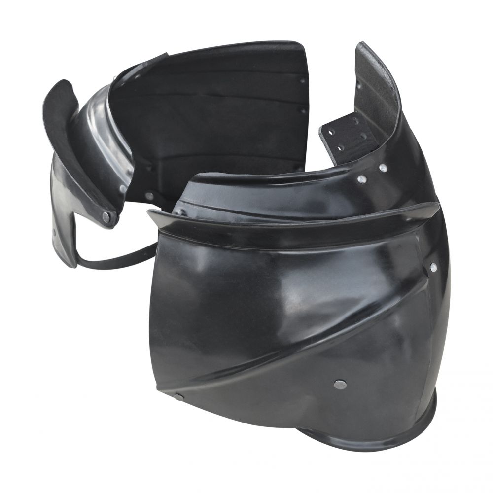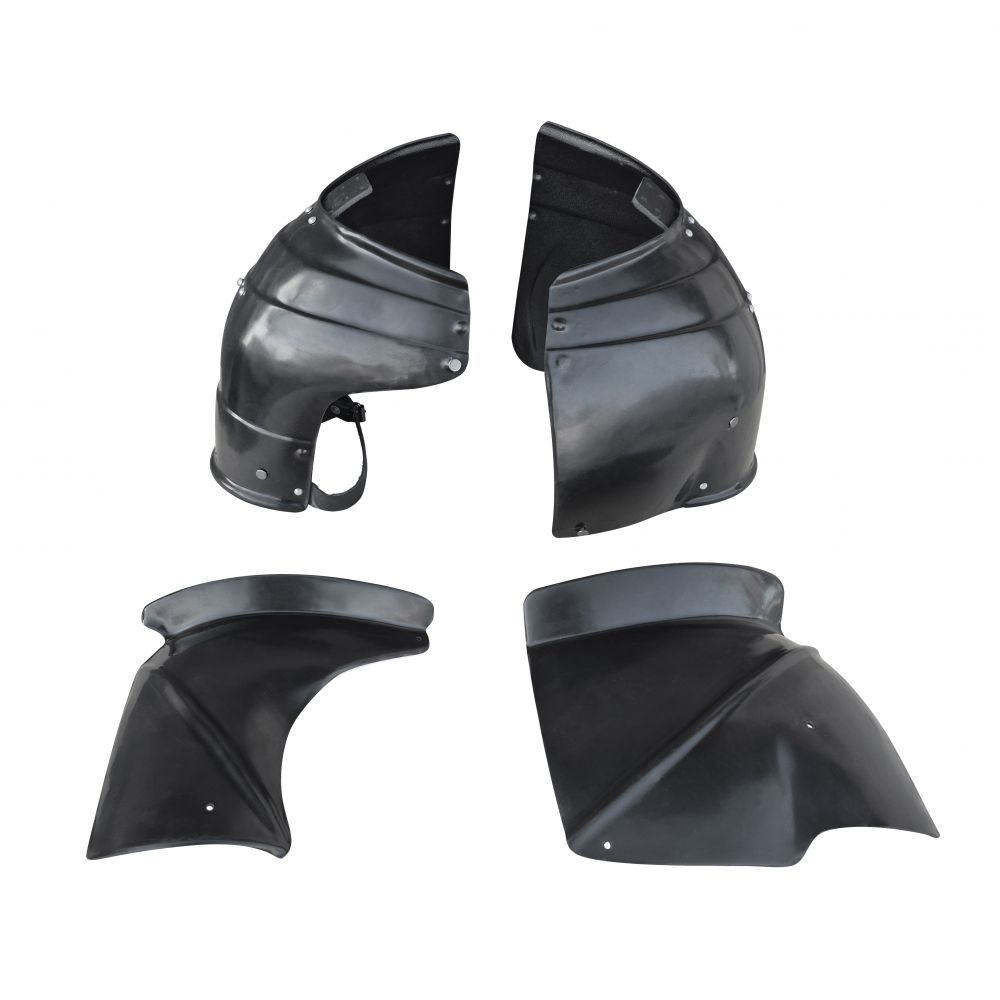 Описание - Наплечники Глянцевые Миланские Большие с дополнительными щитками (пара). Серия "Оникс"Изделия Серии "Оникс" отличаются стремлением к правильным историческим формам, возможностью подгонки под размеры человека и аккуратностью сборки. Цена по умолчанию указана на АБС-пластик. Толщина 3 мм (оптимальная толщина для LARP игр, СМБ, Кино, Театра и Косплея) Опционально за доп.плату: - АБС-пластик. Толщина 4 мм (оптимальная толщина для ролевок на дюрале и текстолите) - ПНД [полиэтилен низкого давления]. Толщина 4 мм (оптимален для HEMA) - Покраска (темный металлик + лак) - Усиленная версия Больших Миланских Наплечников с дополнительными защитными щитками. - Глянцевая поверхность прекрасно подходит под любую дальнейшую покраску благодаря своей ровной поверхности. - Дополнительные щитки съемные и могут быть использованы по необходимости. На наплечниках доп.щитки крепятся с помощью ременных винтов, которые внешне выглядят, как заклепки с плоской шляпкой, но имеют возможность соединять и разделять детали по желанию. - Наплечники со съемными щитками были характерны для второй половины XV века по всей Европе. Большинство сохранившихся Миланских наплечников в музеях имеют такое усиление или места крепления такого усиления. - Наплечники изнутри имеют регулируемые крепления-армпойнты для соединения с латными руками или брассарами. - Миланские Наплечники имели свою особенную форму, не повторявшуюся нигде более. - Каждый состоял из 4 и более (до 7) сегментов, соединённых скользящими заклёпками, и они закрывали не только плечо, но и заходили на спину, некоторые - перекрывали друг друга на спине. - Правый наплечник спереди выполнялся обычно меньше левого с тем, чтобы была возможность положить копьё на упор, левый же наоборот, делался большим, ибо в турнирах на него при помощи стального винта и гайки-барашка или штифта со шпилькой крепился дополнительный стальной щиток. Зачастую оба наплечника имели такие щитки. - Большие наплечники имеют большое преимущество за счет того, что они закрывают большую площадь уязвимых мест, но несколько стесняют движения за счет больших пластин. Но для пластиковых моделей это не столь важно, поскольку они имеют очень малый вес.