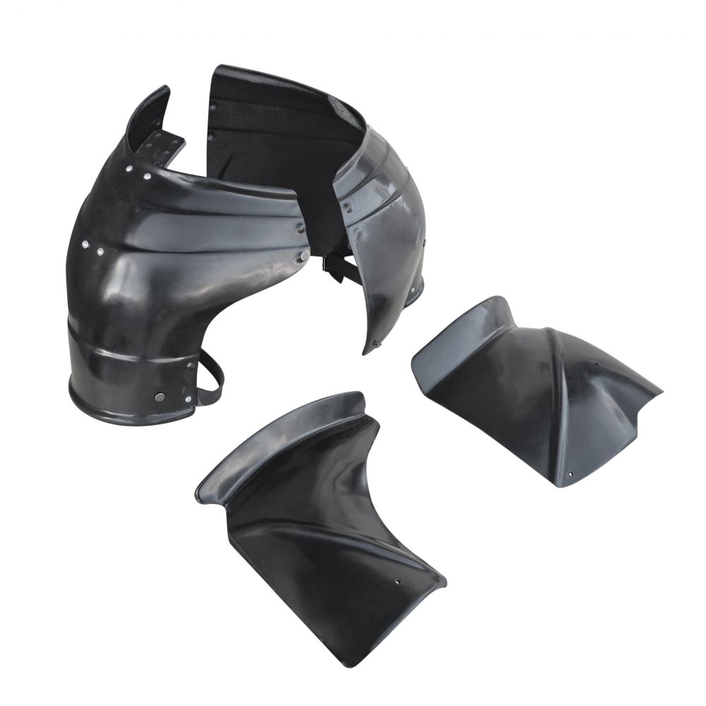 Описание - Наплечники Глянцевые Миланские Большие с дополнительными щитками (пара). Серия "Оникс"Изделия Серии "Оникс" отличаются стремлением к правильным историческим формам, возможностью подгонки под размеры человека и аккуратностью сборки. Цена по умолчанию указана на АБС-пластик. Толщина 3 мм (оптимальная толщина для LARP игр, СМБ, Кино, Театра и Косплея) Опционально за доп.плату: - АБС-пластик. Толщина 4 мм (оптимальная толщина для ролевок на дюрале и текстолите) - ПНД [полиэтилен низкого давления]. Толщина 4 мм (оптимален для HEMA) - Покраска (темный металлик + лак) - Усиленная версия Больших Миланских Наплечников с дополнительными защитными щитками. - Глянцевая поверхность прекрасно подходит под любую дальнейшую покраску благодаря своей ровной поверхности. - Дополнительные щитки съемные и могут быть использованы по необходимости. На наплечниках доп.щитки крепятся с помощью ременных винтов, которые внешне выглядят, как заклепки с плоской шляпкой, но имеют возможность соединять и разделять детали по желанию. - Наплечники со съемными щитками были характерны для второй половины XV века по всей Европе. Большинство сохранившихся Миланских наплечников в музеях имеют такое усиление или места крепления такого усиления. - Наплечники изнутри имеют регулируемые крепления-армпойнты для соединения с латными руками или брассарами. - Миланские Наплечники имели свою особенную форму, не повторявшуюся нигде более. - Каждый состоял из 4 и более (до 7) сегментов, соединённых скользящими заклёпками, и они закрывали не только плечо, но и заходили на спину, некоторые - перекрывали друг друга на спине. - Правый наплечник спереди выполнялся обычно меньше левого с тем, чтобы была возможность положить копьё на упор, левый же наоборот, делался большим, ибо в турнирах на него при помощи стального винта и гайки-барашка или штифта со шпилькой крепился дополнительный стальной щиток. Зачастую оба наплечника имели такие щитки. - Большие наплечники имеют большое преимущество за счет того, что они закрывают большую площадь уязвимых мест, но несколько стесняют движения за счет больших пластин. Но для пластиковых моделей это не столь важно, поскольку они имеют очень малый вес.