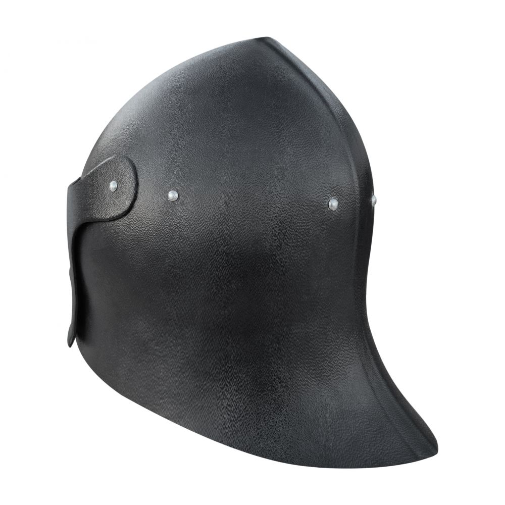 Описание - Шлем Пластиковый Салад Матовый. Серия "Оникс"Изделия Серии "Оникс" отличаются стремлением к правильным историческим формам, возможностью подгонки под размеры человека и аккуратностью сборки. Цена по умолчанию указана на АБС-пластик. Толщина 3 мм (оптимальная толщина для LARP игр, СМБ, Кино, Театра и Косплея) Опционально за доп.плату: - АБС-пластик. Толщина 4 мм (оптимальная толщина для ролевок на дюрале и текстолите) - Подбородочные ремни - Кожаная подвеска - Пластиковая версия Шлема Салада с подвижным забралом. - Матовый вариант прекрасно выглядит без всякой покраски, придавая поверхности изделия вид вороненого кованого металла. - Один из самых популярных и узнаваемых шлемов Позднего Средневековья был популярен в XV-XVI веках благодаря сочетанию высокой защиты, отличного обзора и комфорта. Он стал легче предшественников (бацинетов), обеспечивал хорошую вентиляцию, не ограничивал движения, а длинный «хвост» защищал шею, что делало его идеальным для рыцарей и пехоты. - Основные причины популярности салада: - Улучшенная видимость и обзор: В отличие от полностью закрытых шлемов, салад позволял лучше ориентироваться в бою. - Комфорт и легкость: Шлем не был слишком тяжелым, а его форма позволяла свободно дышать. - Защита шеи и затылка: Удлиненная задняя часть («хвост») эффективно защищала от рубящих ударов сзади. - Универсальность: Использовался как с забралом (рыцари), так и открытым (лучники, пехота), легко сочетался с бувигером-бевором-горжетом (защитой подбородка и горла). - Соответствие эпохе: Салад стал отличным решением для изменившейся тактики боя, когда рыцари чаще спешивались, а значение пехоты возросло. ![]() Условия доставкиВариант 1: Самовывоз из магазина по адресу 2-й Вязовский проезд, 10